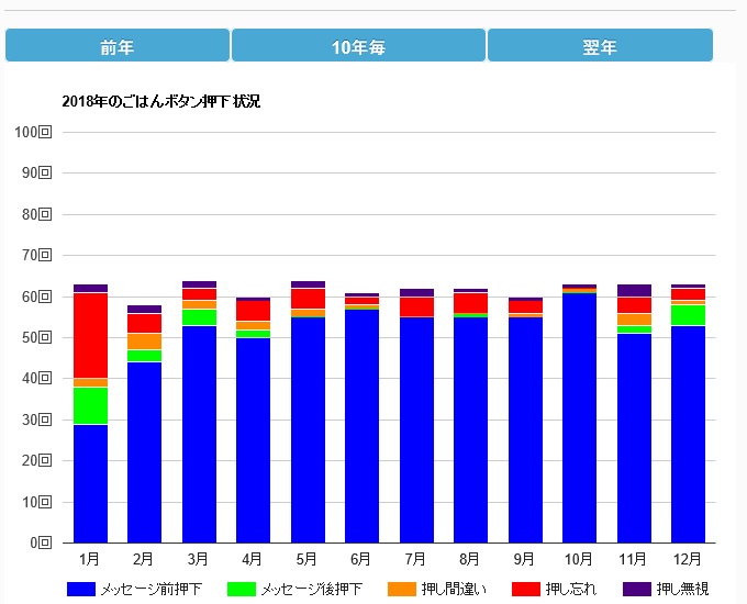 メッセージ前押下やメッセージ後押下が大半であれば、問題ありませんが、押し間違いや押し無視が増加してくると、認知症の前兆であると言えます。