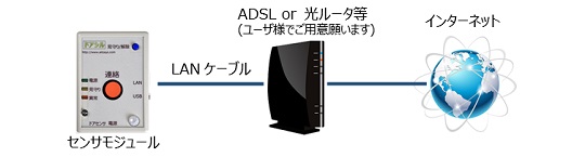 ユーザ様ご自身でモバイルルータを準備し接続することも可能ですが、見守り機器という機能上、もしもの時にネットワークが使えない状態だった、といったことは避けなければなりません。